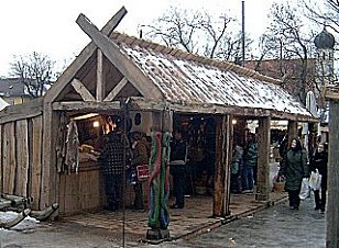 Weihnachtlicher Mittelaltermarkt 2004 - Agnes-Bernauer-Strasse (Laim): Keltenlanghaus • Schmied • Siegel und Schreybwaren